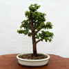 Nice Jade with a great trunk line potted in a glazed ceramic pot. Grown in Florida, this tree is 8 years old. As you can see, we really started to work this tree hard this year and pads are starting to form. Considered as Medium tree, this Jade has subtle trunk trunk movement.