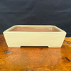 The cream exterior has a soft, almost velvety look in the photos, while the unglazed pink interior adds warmth and a sense of craftsmanship when viewed from above. That contrast gives the pot more personality than a standard plain rectangle. It is understated, but not forgettable. This is the sort of pot that earns appreciation over time because the form is right, the tone is right, and it will remain useful in a serious collection for years.